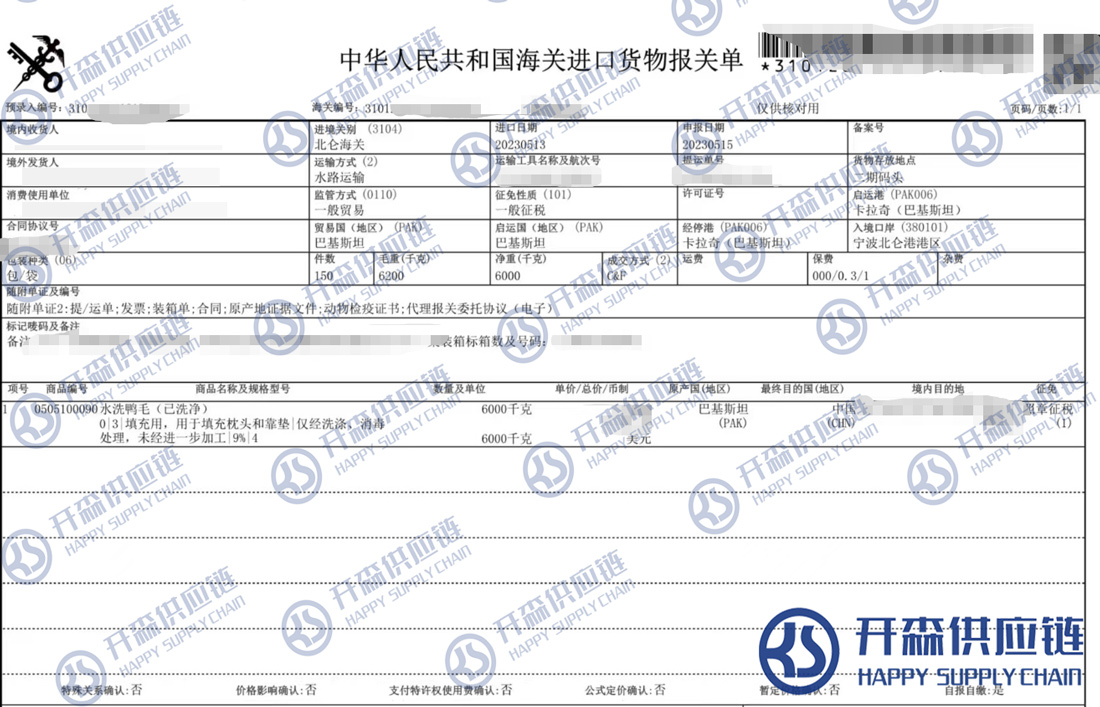 一、寧波港巴基斯坦水洗鴨毛進(jìn)口報關(guān)代理案例詳情