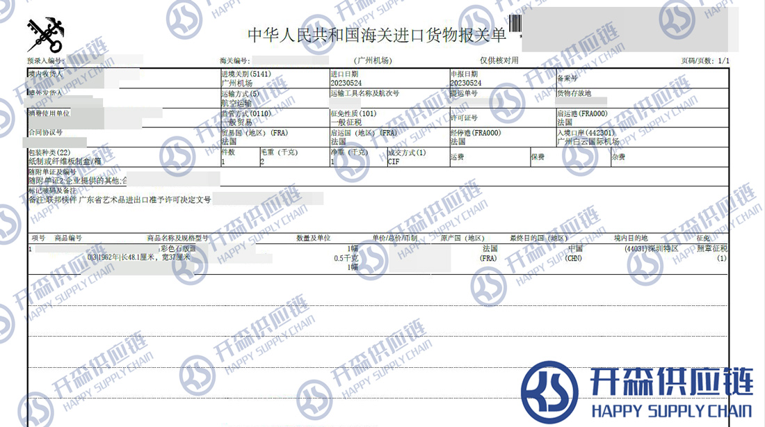一、法國(guó)彩色石版畫進(jìn)口報(bào)關(guān)代理案例詳情